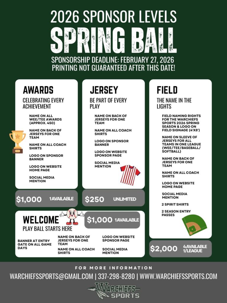 FEBRUARY 27- SPRING SPONSORSHIP DEADLINE